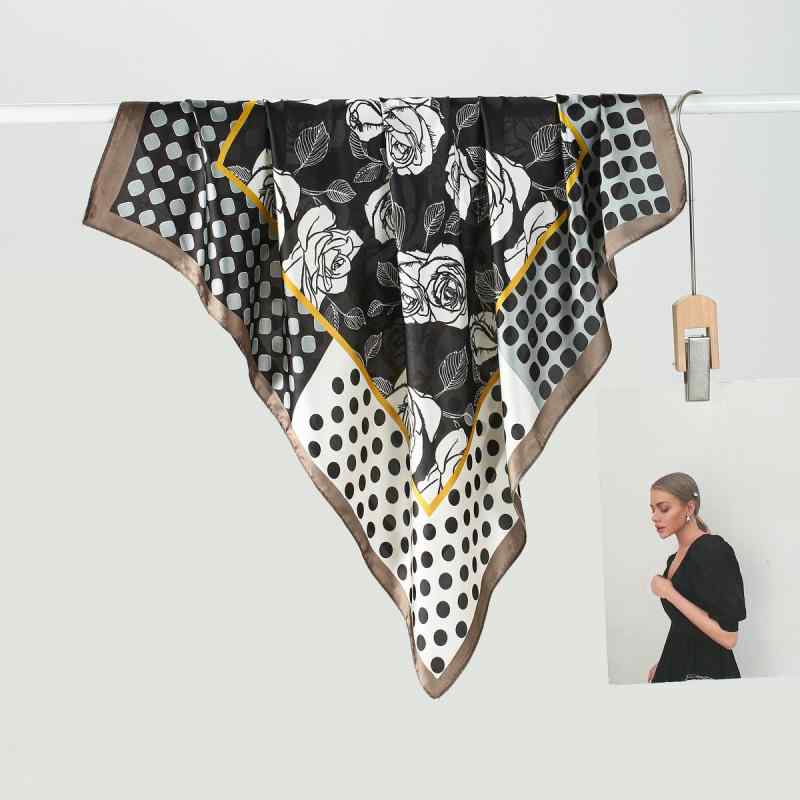 スカーフ レディース 春夏 万能 上品 高級感 ドット柄 ローズプリント 水玉模様 薔薇柄 サテン ・・・