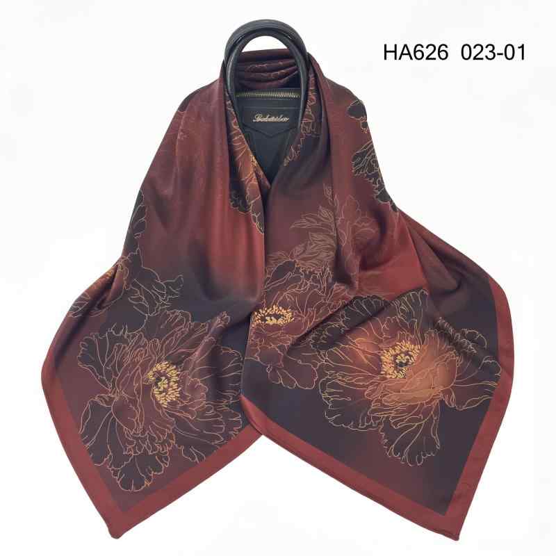 シルクタッチの上品な大判スカーフ、日焼け対策や冷房対策に。デザイン豊富でおしゃれな風呂敷としても、旅行時のコーディネートに活躍。