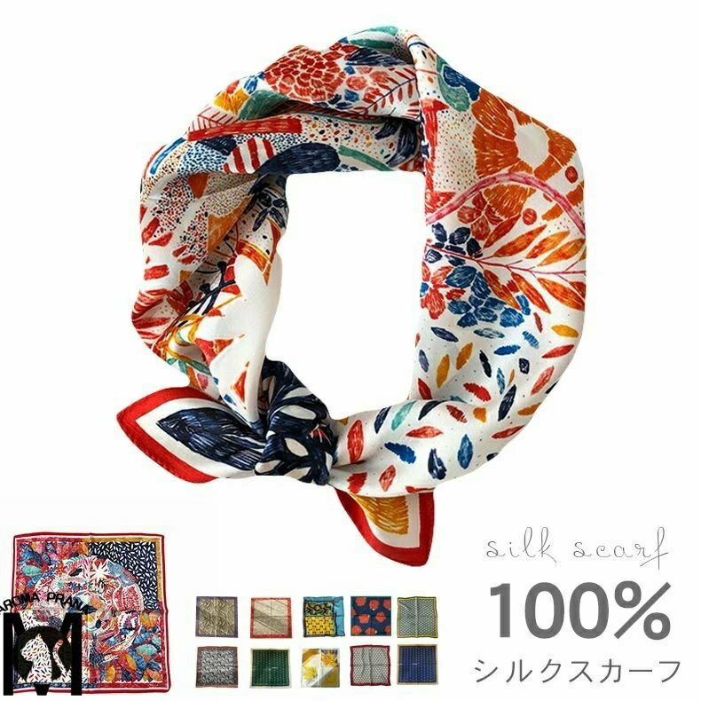 送料無料 シルク 100% スカーフ 正方形 大判 シルク レディース