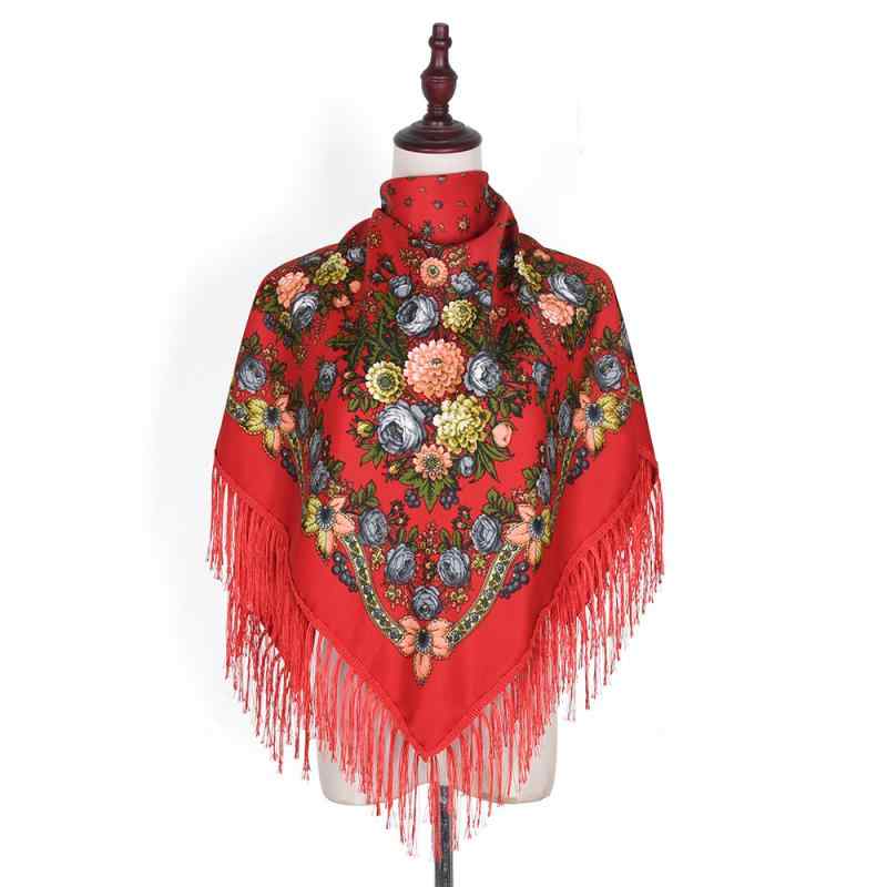 スカーフ レディース 女性用 エスニック柄 花柄プリント 刺繍 タッセル 大判 正方形 保温 冷房対・・・