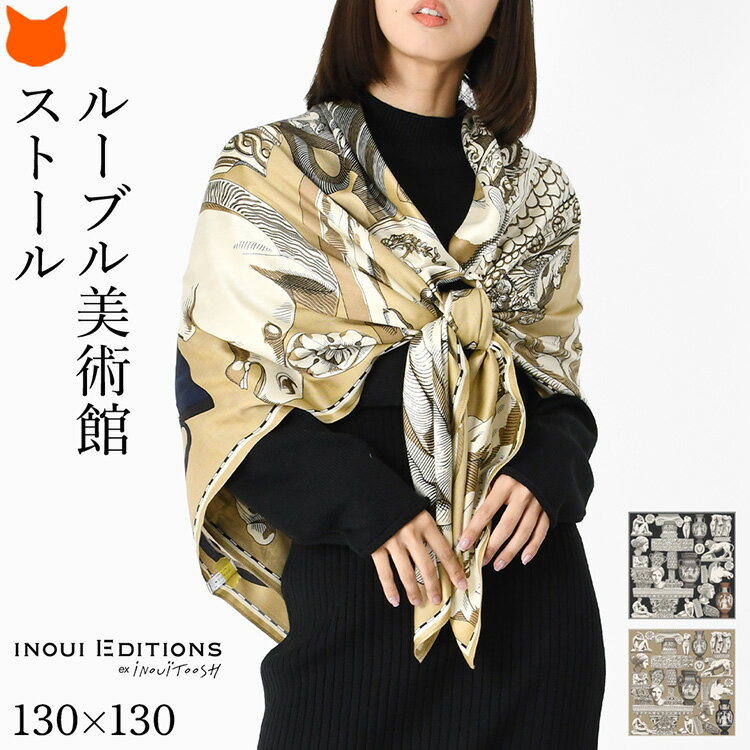 フランスブランド INOUI EDITIONS(イヌイエディションズ)とルーブル美術館の特別なコラボストール。古代ギリシャやローマの彫刻モチーフの美しいシルク混ストール。130cm正方形大判サイズ