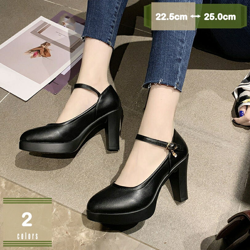 パンプス 痛くない 歩きやすい 走れる ストラップ ハイヒール 太めヒール 厚底パンプス アンクルストラップ 8cmヒール 黒 ブラック 白 ホワイト 結婚式 卒業式 入学式 パーティー