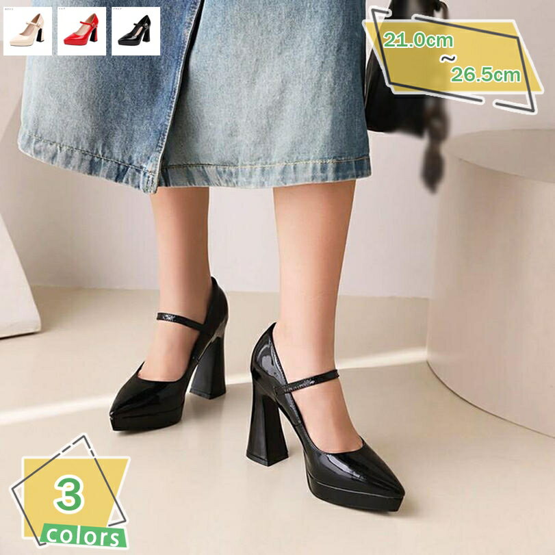 500円OFFクーポン パンプス レディース ハイヒール ストラップ 厚底 太いヒール レディースシ・・・
