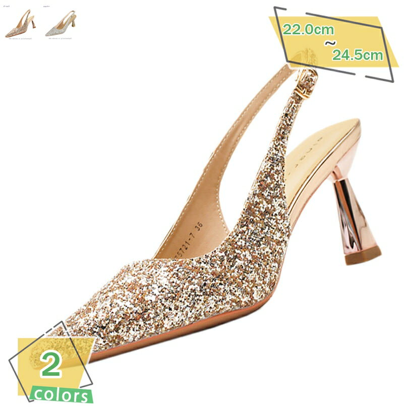 結婚式 パンプス グリッター ハイヒール ポインテッドトゥ バックストラップ 美脚 通勤 歩きやすい サンダル ドレスシューズ 可愛い 軽量 婦人靴 8cmヒール ラメ おしゃれ