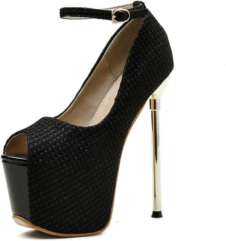 パンプス ヒール オープントゥ ハイヒール アンクルストラップ エナメル メタリック 厚底 パンプス・・・