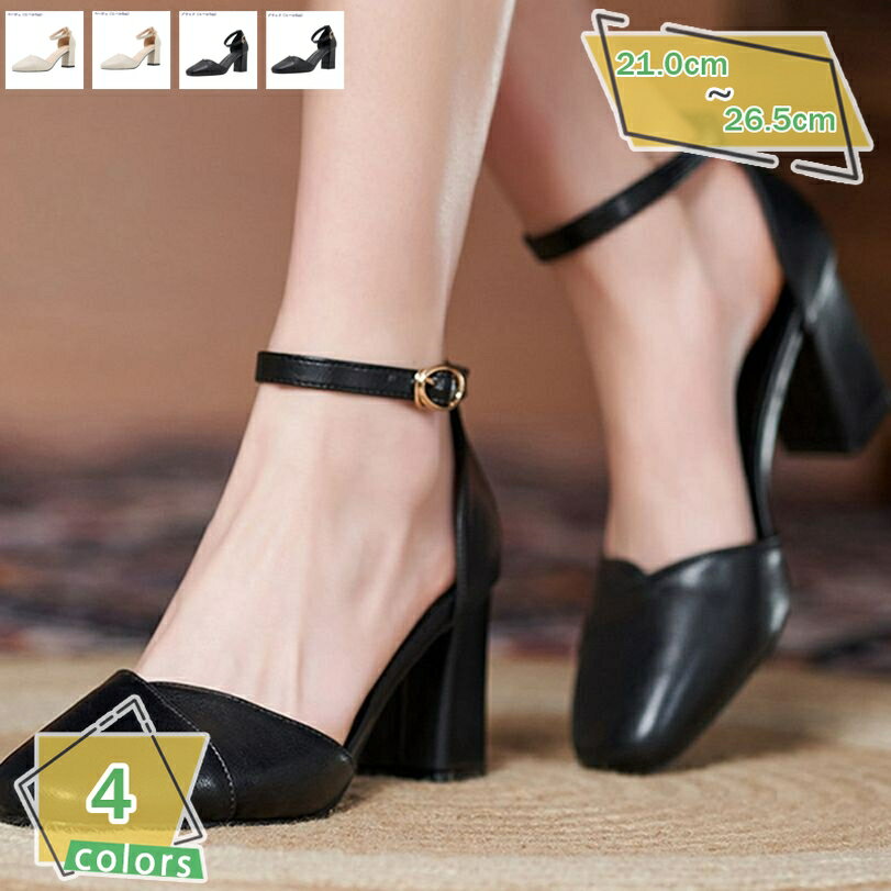 1000円OFFクーポン 太ヒール パンプス 痛くない 疲れない セパレートアンクルストラップ ハイ・・・