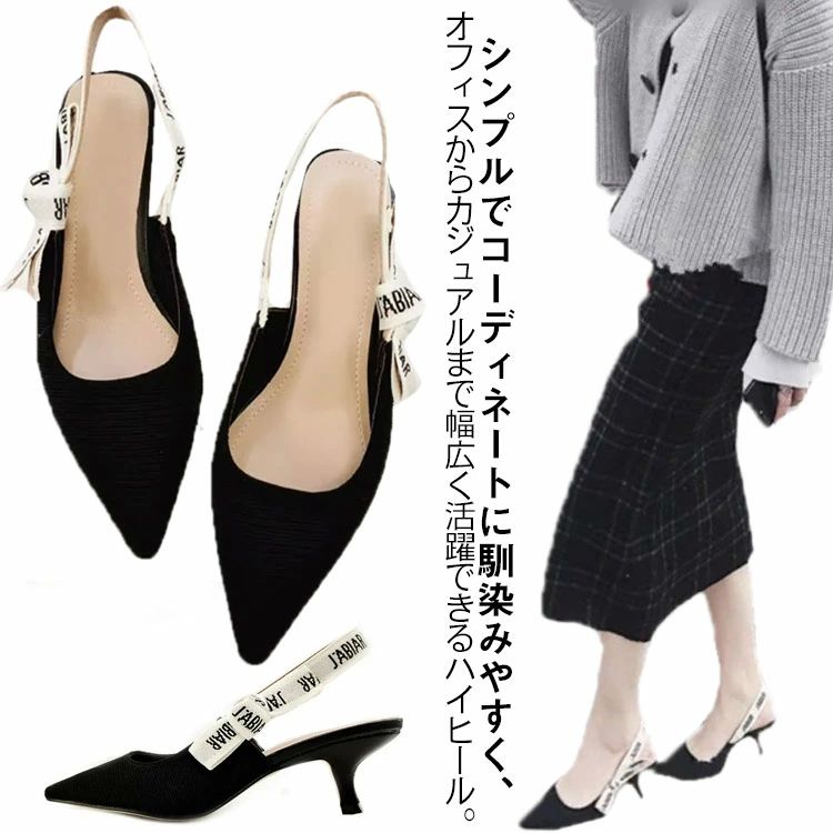 パンプス バックストラップ レディース ハイヒール 春夏 ポインテッドトゥ ゴム 靴 無地 おしゃれ・・・