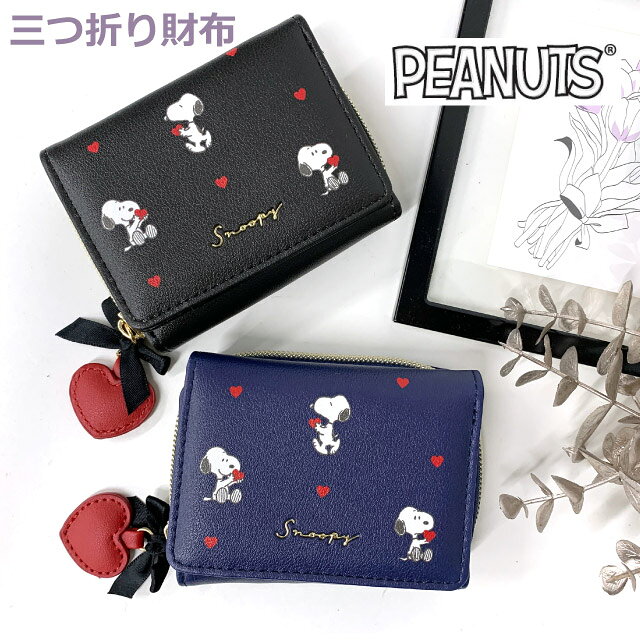 【75145】SNOOPY スヌーピー ハート 三つ折り財布 3つ折り財布 ミニ財布 ラウンドファスナー 財布 さいふ ミニ 小さめ コンパクト 女の子 大人 子供 シンプル ブラック ネイビー