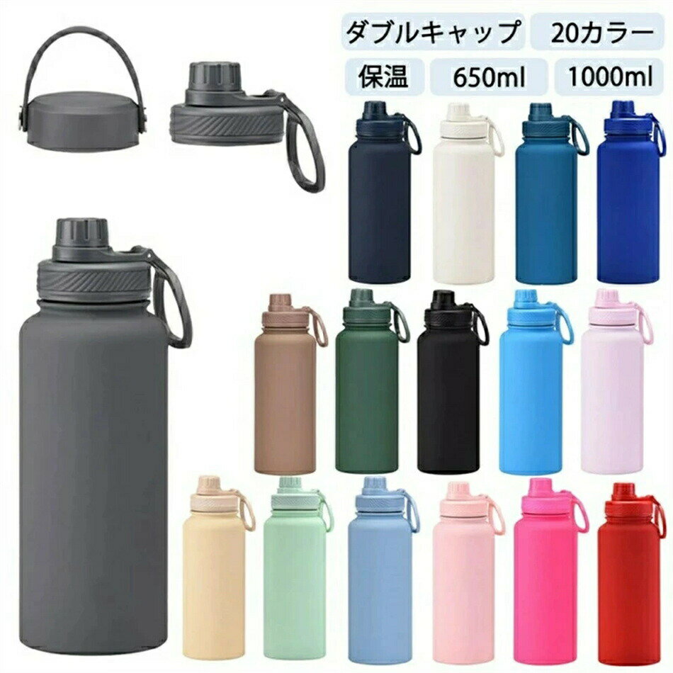 水筒 1リットル ダブルキャップ 2つキャップ 20カラー 20色 20color 真空断熱 スポーツボトル 保温 保冷 スポーツ飲料対応 1L 650ml 650ML すいとう 洗いやすい ステンレスボトル