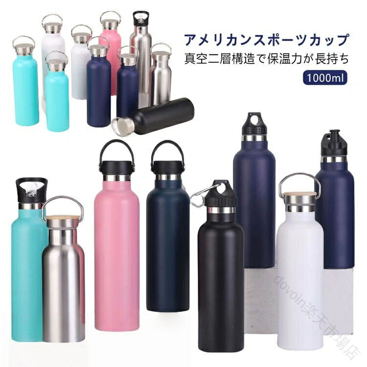 水筒 1リットル ダブルキャップ 2つキャップ 20カラー 20色 20color 真空断熱 スポー・・・