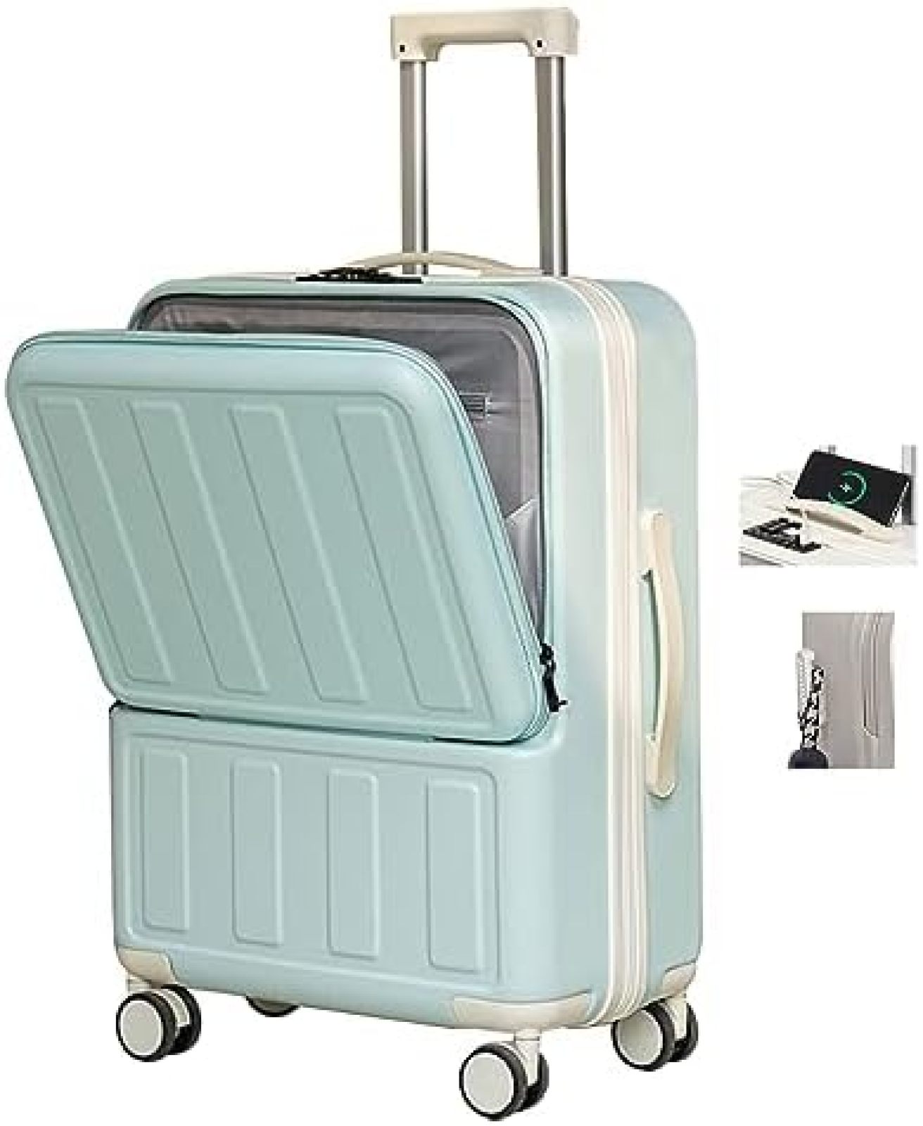 スーツケース Sサイズ フロントオープン 機内持ち込み キャリーバッグ USBポート付き ドリンクホルダー付き かわいい ストッパー付き ダブルキャスター 軽量 静か 女性 頑丈 海外 1日?3日