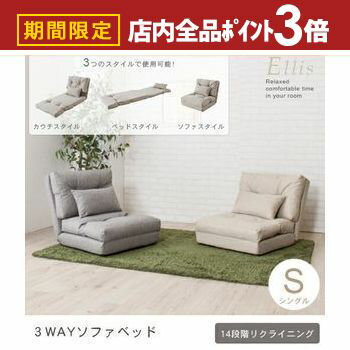 【最大3,000円OFFクーポン有!PT3倍!スーパーSALE】リクライニング 3WAY ソファベッ・・・