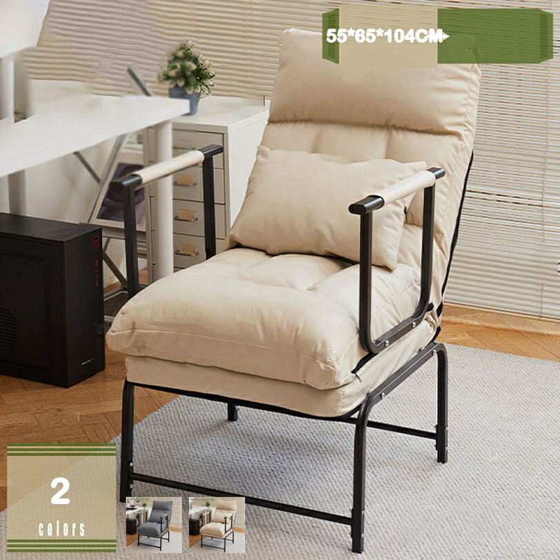 オフィスチェア リクライニング ソファベッド 1人掛け 肘付き 折りたたみ式 可動式背もたれ付き コンパクト 寝椅子 くつろぎチェア 客室/寝室/書斎/リビング/バルコニー対応 多機能