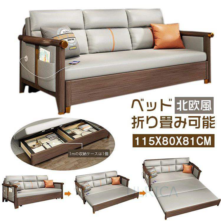ソファベッド 一人掛け コンパクト リクライニング 木製肘付き ハイバックソファ 北欧 おしゃれ シンプル 折りたたみ 一人暮らし リビング 寝室 来客用 ゲストルーム インテリア用品
