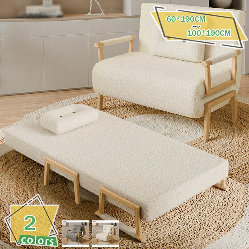 ソファベッド 折りたたみ 3WAY ファブリック生地 カウチソファー 幅60 肘付き 一人掛け 二人・・・