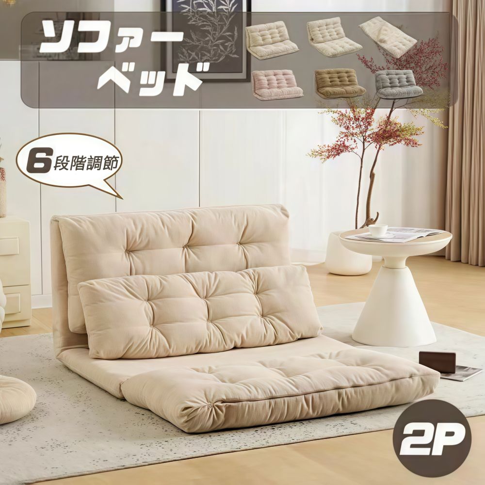 ソファーベッド 二人用 折畳み 6段階調節 可愛い マルチに使える フロアソファ リクライニング 座椅子 1人掛け 2人掛け 折りたたみ コンパクト フロアソファ ロ