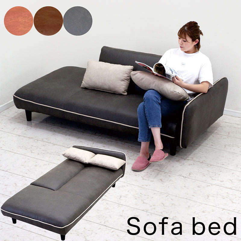 革に近いしっかりとした手触りの人工皮革(レザーファブリック)を張地に使用したソファーベッド 一人暮らしやワンルームのお客様におすすめです