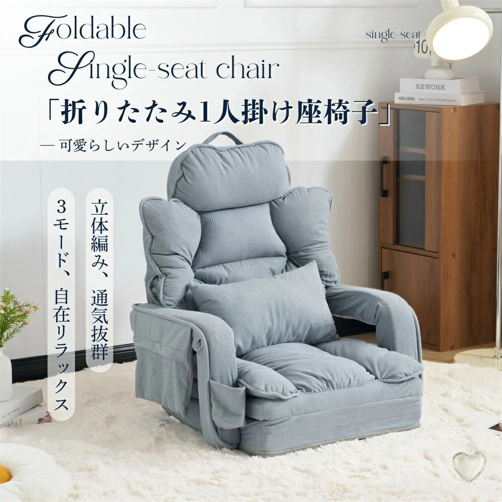 【一年間品質保証】座椅子 ソファー ソファーベッド 42段調整可能 2WAY 1人掛け シンプル 折りたたみ フロアソファー 寝る 座る 可愛い外観 実用性 コンパクト ふわふわ