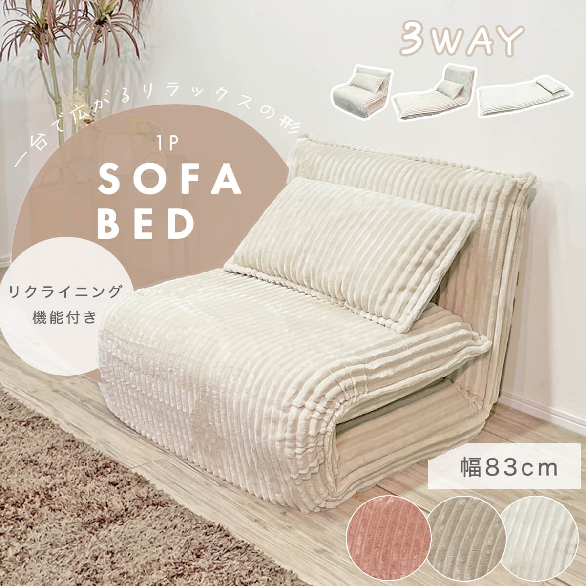 座る、寝る、暮らしに寄り添うソファベッド。コンパクトで一人暮らしにもピッタリ。かわいいデザインとなめらかな触り心地に夢中になる、自分だけのリラックス空間を作ります。