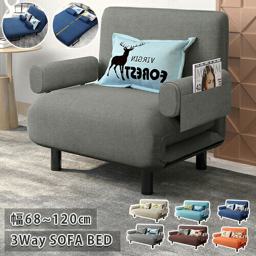 1台3役をこなす、丸一日くつろげるソファベッド。ファブリック ポケット付 肘掛け ライトブルー ブルー オレンジ ライトブラウン ベージュ グレー 幅68 80 100 120cm