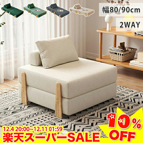 ソファベッド 折りたたみ 3WAY ファブリック生地 カウチソファー 肘付き 一人掛け 二人掛け カ・・・