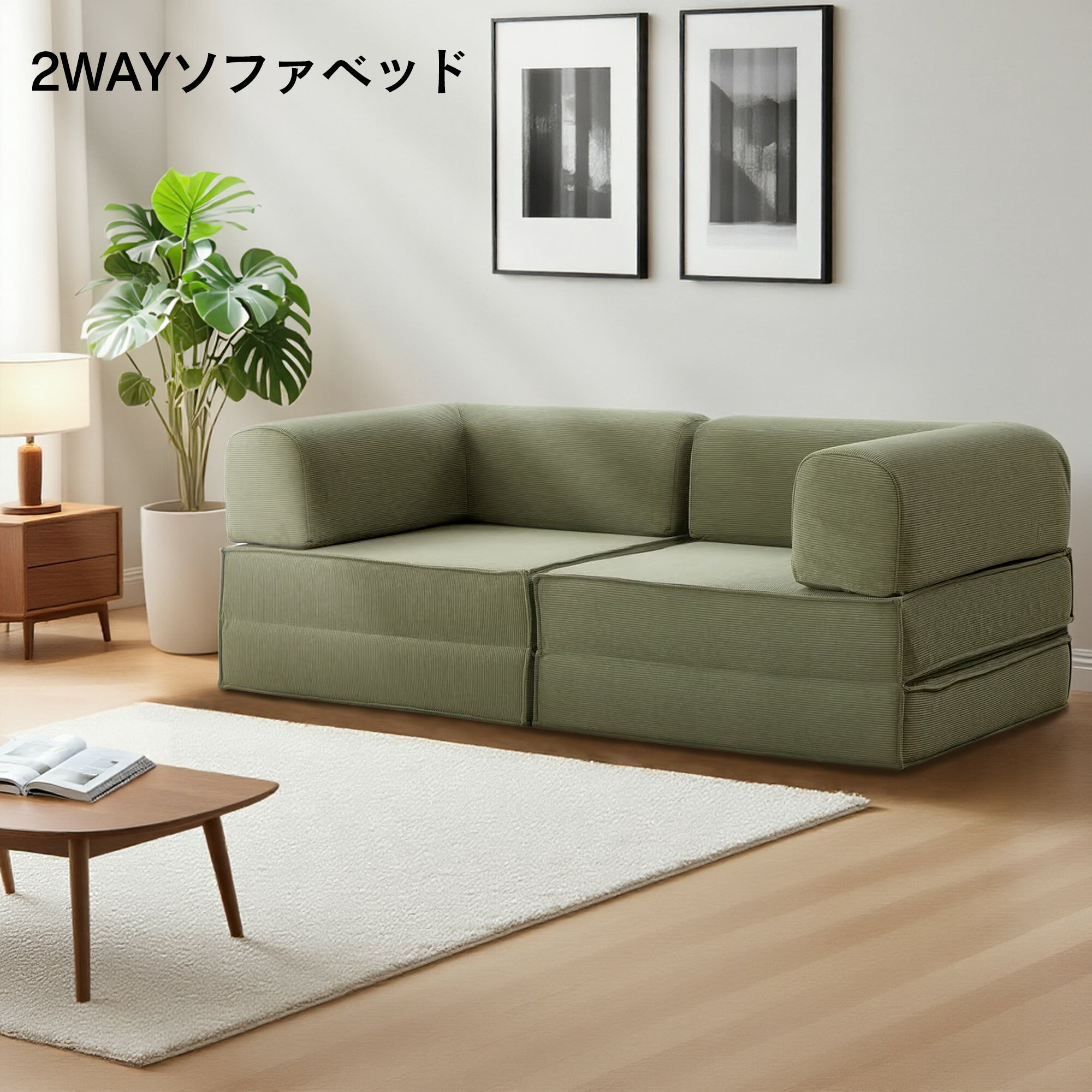 ソファーベッド 2人掛け 肘付き ソファベッド ベッド 3way ソファ ソファー 3つ折り 折りたたみ ローソファー フロアソファ 手触りのいいファブリックソファ&座り心地のよいデザイン