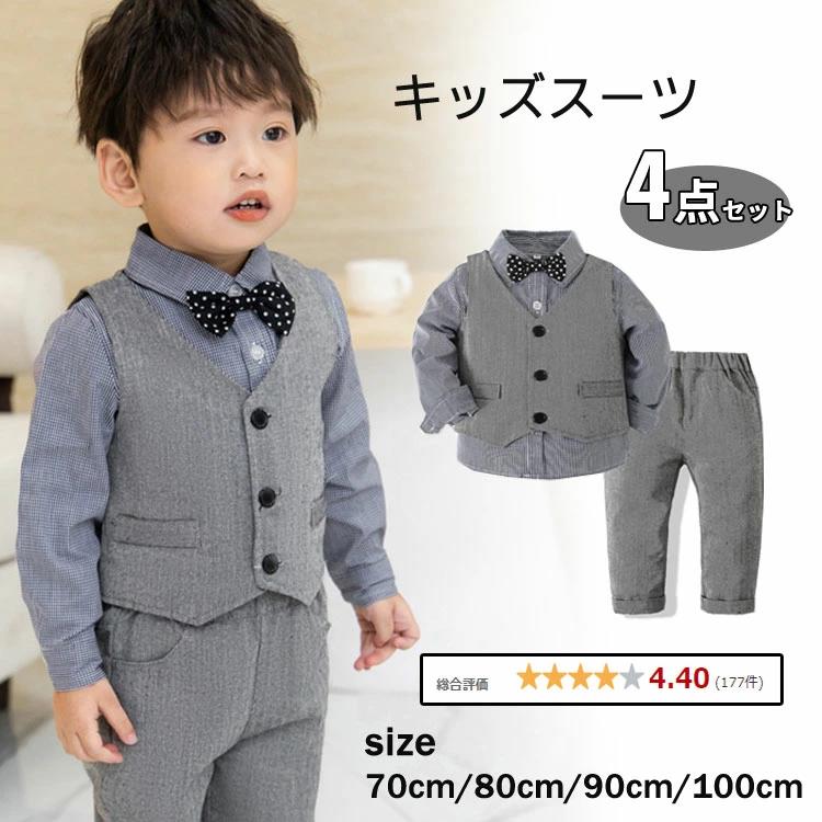男の子 子供 スーツ 4点セット 80~130cm キッズ フォーマル セットアップ ベビー 子供服・・・