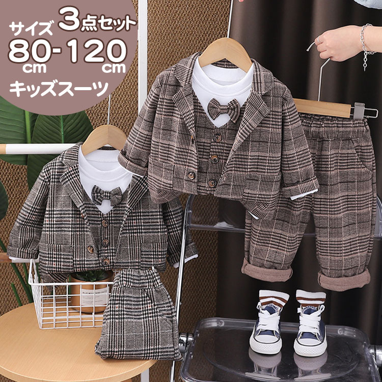 【送料無料】フォーマルスーツ 男の子 スーツ キッズ 子供服 タキシード チェック柄 3点セット ジ・・・