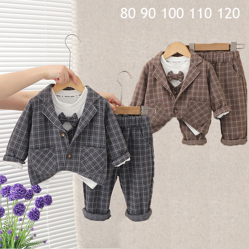 子供服 スーツ 男の子 3点セット(ベスト+ズボン+シャツ) タキシード ベビー キッズ制服 赤ちゃん ジュニア おしゃれ 児童 チェック柄 フォーマル スーツ イギリス風 卒業式/入学式/発表会