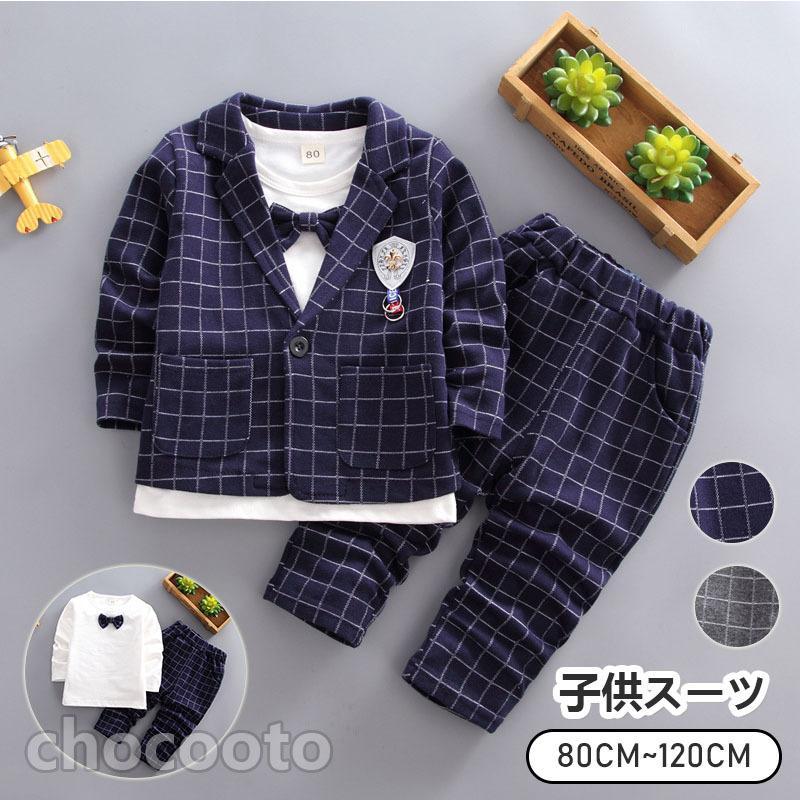 ベビー服 子供 フォーマル スーツ 七五三 スーツ 入園式 スーツ お宮参り スーツ 長袖 かっこいい フォーマルスーツ春 秋 冬 チェック柄 おしゃれ 蝶ネクタイ付
