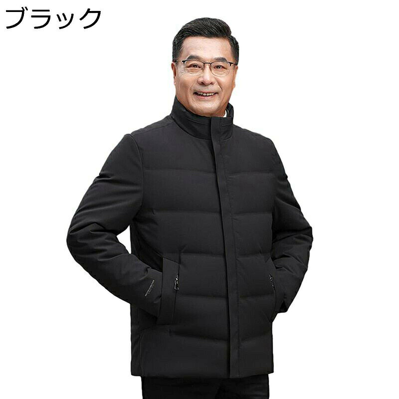 メンズ ダウンジャケット L-5XL 高齢者 ダウンコート ステンカラー 無地 秋冬 防風 紳士 秋・・・