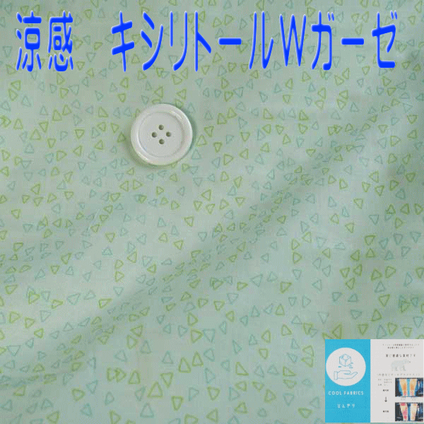 ひんやり 冷感ダブルガーゼ ミント エッジ110cm 幅 キシリトール 50cm単位 はかり売り マ・・・