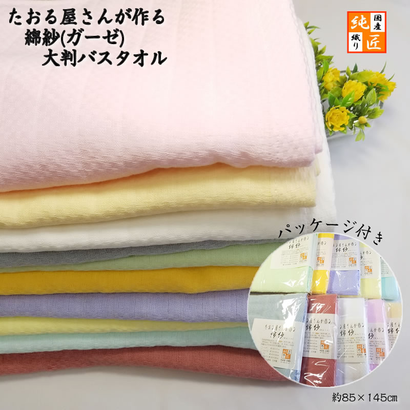 【パッケージ付き】大判ガーゼバスタオル〈日本製〉たおる屋さんが作る綿紗【約85×145cm】パッケー・・・
