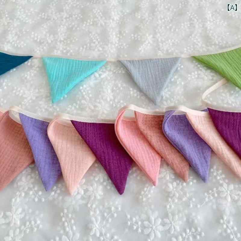 ガーランド 子供用 ダブルガーゼ 綿 クレープ生地 無地 シンプル 三角旗 ペナント 誕生日 パーテ・・・