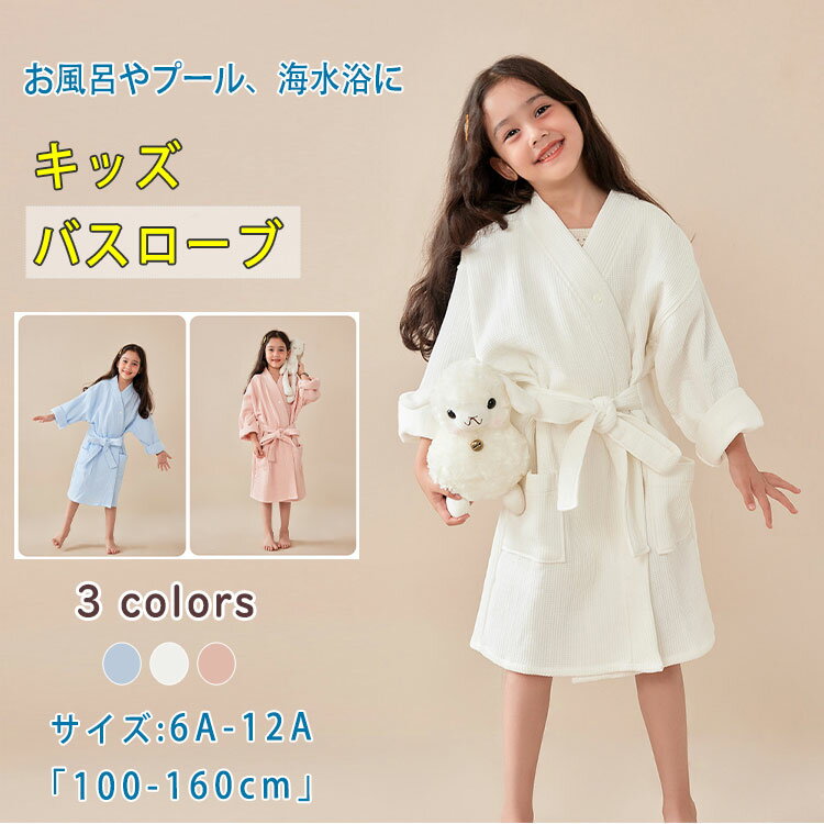 【送料無料】凸凹ワッフル生地で吸水×速乾×保温!お風呂上がりに羽織るだけで湯冷め防止&快適さUPのキッズバスローブ