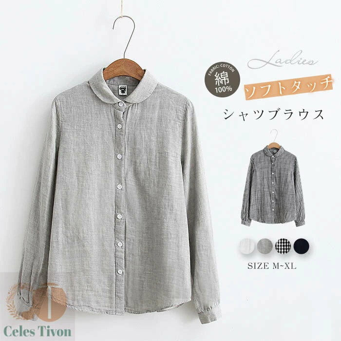 羽織り 通勤 ガーゼコットン 春 ゆったり カジュアル オフィス 綿 ブラウス 柔らかい 長袖 夏 ・・・