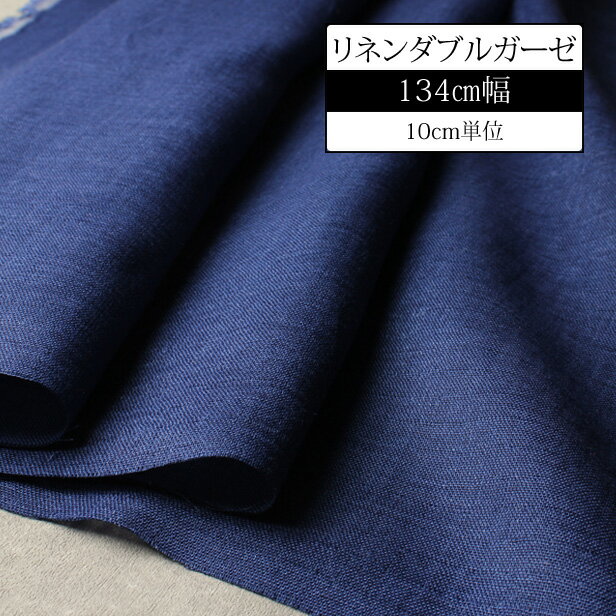 美しいネイビーが印象的なリネン100%ダブルガーゼ生地。たっぷり使える134cm幅。色落ちしにくい冷房対策のはおり物にもおすすめ