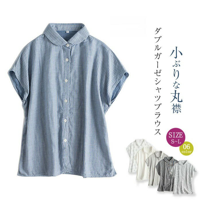 「新色追加」 コットン100% 2重ガーゼ シャツブラウス レディース 丸襟 シャツ ブラウス 長袖・・・