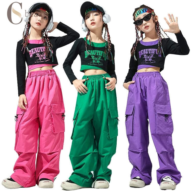 個性 HIPHOP 子供ダンス ガール DANCEヒップホップ hiphop キッズダンス衣装 カーゴパンツ ロングパンツ ダンスウェア 子供服