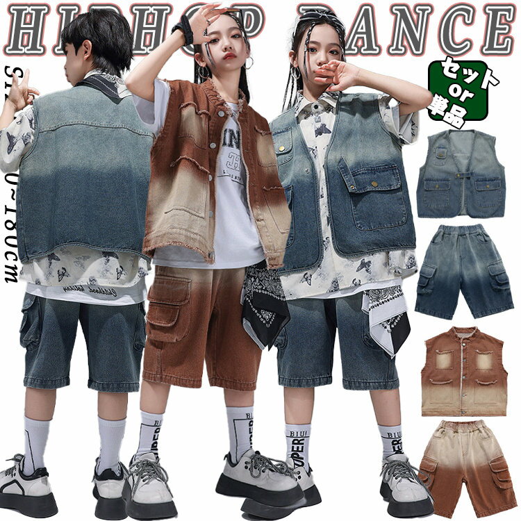 キッズ ダンス衣装 セットアップ ユニセックス衣装 グラデーションカラー デニム 上下セット ベスト・・・