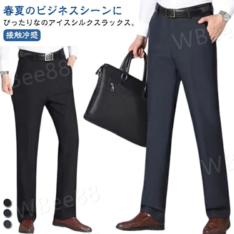 送料無料 スラックス メンズ 接触冷感 裾上げ済み 夏 ビジネスパンツ アイスシルクパンツ 夏 ストレッチ 涼しい 吸水速乾