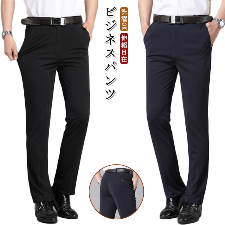 スラックス 裾上げ済み メンズ ウォッシャブル ストレートパンツ スーツパンツ ボトムス ロングパン・・・