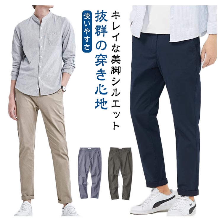チノパンツ ストレッチ ボトムス ストレート シンプル 無地 春秋 ゆったり 裾上げ済み