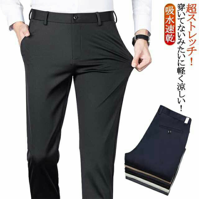 接触冷感 ストレッチ アイスシルクパンツ 裾上げ済み ビジネスパンツ 夏 涼しい 大きいサイズ メン・・・