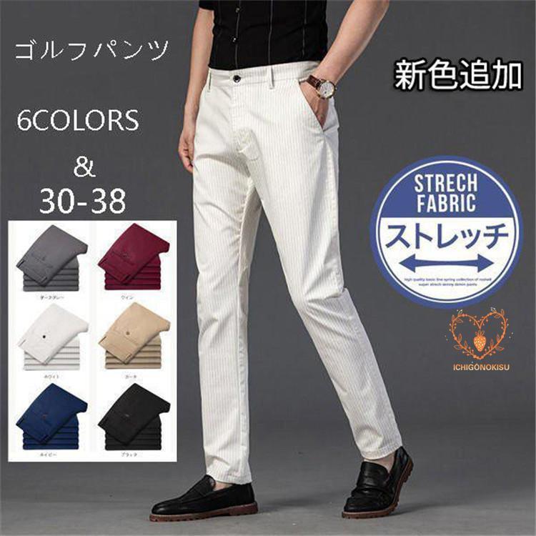 ゴルフパンツ メンズ ストレッチパンツ 紳士パンツ スラックスパンツ ストライプ柄 ストレッチ チノパン カジュアル 裾上げ済み 春夏秋 家庭洗濯