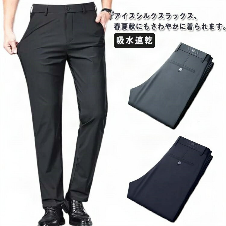 スラックス メンズ 接触冷感 裾上げ済み ビジネスパンツ アイスシルクパンツ 大きいサイズ 夏 スト・・・