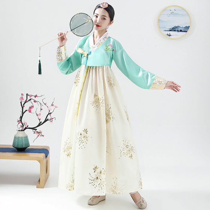 韓国伝統の美しさを表現する民族衣装で結婚式やイベント、舞台演出におすすめの華やかなデザインです