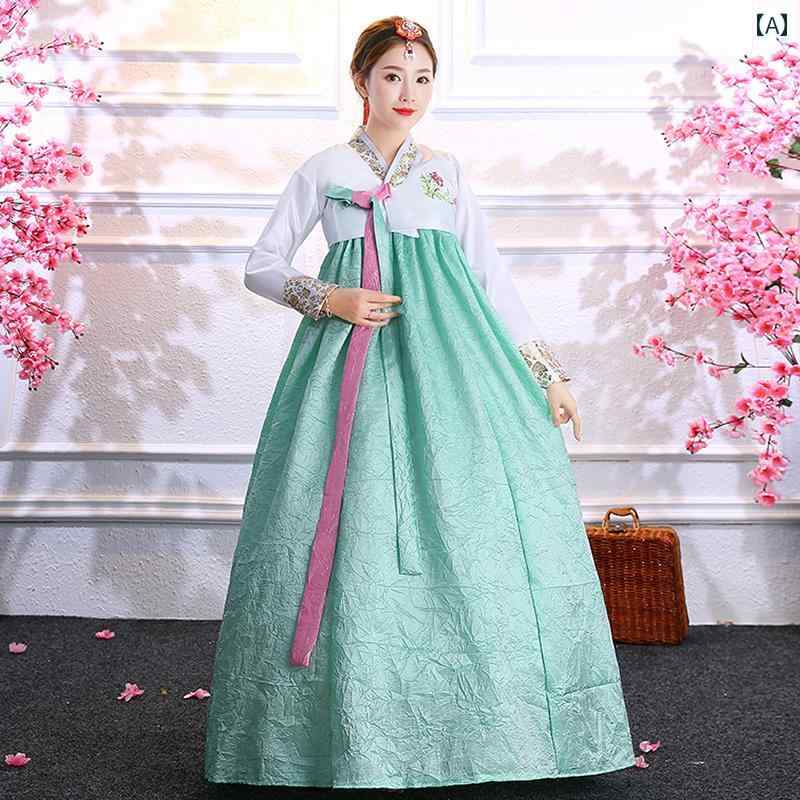 韓服 チマチョゴリ 韓国民族衣裳 舞台 ステージ ダンス 衣装 刺繍入 宮廷 韓服 ドレス チマチョ・・・