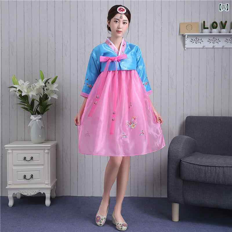 3色展開 韓国服 韓国ドレス 韓服宮廷風チマチョゴリ 中国朝鮮族服 上下2点セット/ステージワンピー・・・