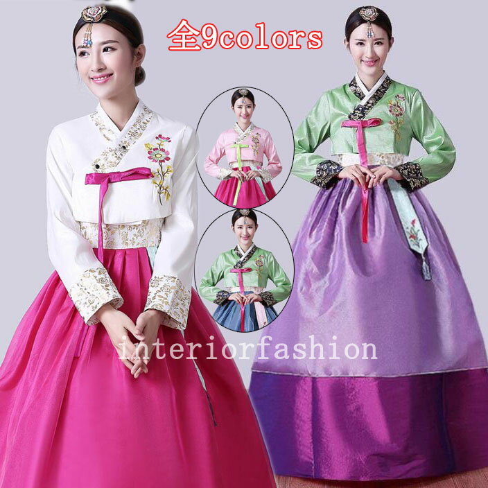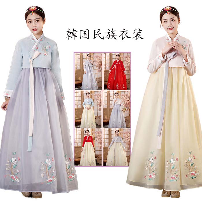 花柄刺繍 韓国風ドレス チマチョゴリ 大人用民族衣装9色可愛い 韓国伝統民族衣装 長袖ブラウス ロング丈ワンピース 古代宮廷風発表会